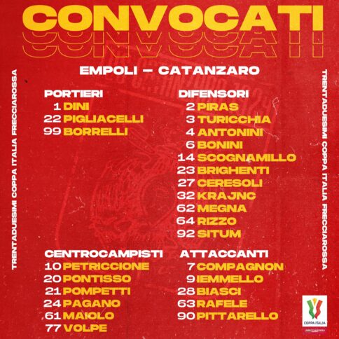 CATANZARO Prima conferenza stampa pre-gara ufficiale da tecnico del Catanzaro per Fabio Caserta. Domani la sua squadra affronterà al “Castellani” l’Empoli per i 32esimi di finale. «La differenza di categoria c’è, è chiaro – ha detto oggi l’allenatore – ma contro qualsiasi avversario a me interessa vedere una squadra che ha voglia di giocarsela a viso aperto. Mi aspetto che i ragazzi dimostrino quei progressi fisici, tattici e tecnici necessari per farci trovare pronti all’inizio del torneo». Circa un mese di lavoro per un gruppo che sta assimilando le nuove idee di gioco: «All’inizio non è mai semplice – afferma Caserta – ma ho trovato la grande disponibilità da parte di tutta la squadra nel seguirmi facendo ciò che è stato proposto. L’impegno è stato massimo e per questo non posso che essere soddisfatto. E’ evidente che ci vuole un po’ di tempo e anche pazienza ma sono ottimista e tutti insieme, sono certo, supereremo le difficoltà che incontreremo nel corso di questa serie B, come sempre, difficilissima». Nonostante le temperature molto più alte che a Courmayeur, anche nella settimana post ritiro trascorsa in Toscana, la squadra ha lavorato sodo: «Ci siamo concentrati, in particolare, sul lavoro fisico con carichi pesanti che smaltiremo nei prossimi giorni, in vista del debutto in campionato». Su formazione e modulo per questo primo impegno ufficiale, il mister attende la rifinitura di domattina. «Nelle amichevoli disputate fino adesso ho provato più soluzioni. Domani – ha concluso – schiererò la squadra con il sistema di gioco che, a mio avviso, metterà i ragazzi di più a loro agio».