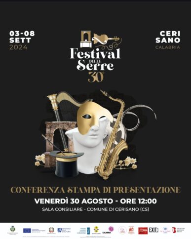 CERISANO Alle ore 12 di venerdì 30 agosto, nella nuova sala consiliare del Comune, saranno “svelate” tutte le novità della 30^ edizione del Festival delle Serre di Cerisano.
