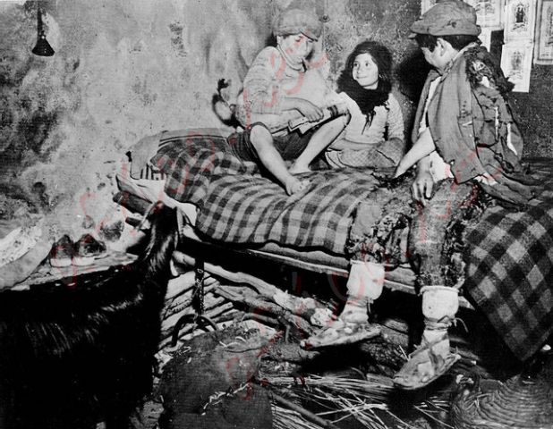 Vi sono due foto, ad esempio, che dimostrano come il rancido pane di mischio di cui parla l’articolo non era il solo che si mangiasse ad Africo, ma che vi era anche consumo di pane di frumento: le foto con le donne che impastano il pane di frumento e fanno la sfoglia per la pasta di casa. E vi sono altri scatti che dimostrano come nella comunità non vi fossero solo depressione ed abulia ma anche momenti di gioia e di tenerezza, di lavoro anche nelle case: le foto di adulti e bambini che stanno attorno al fuoco e suonano strumenti da loro stessi costruiti, il matrimonio, il lavoro al telaio etc.