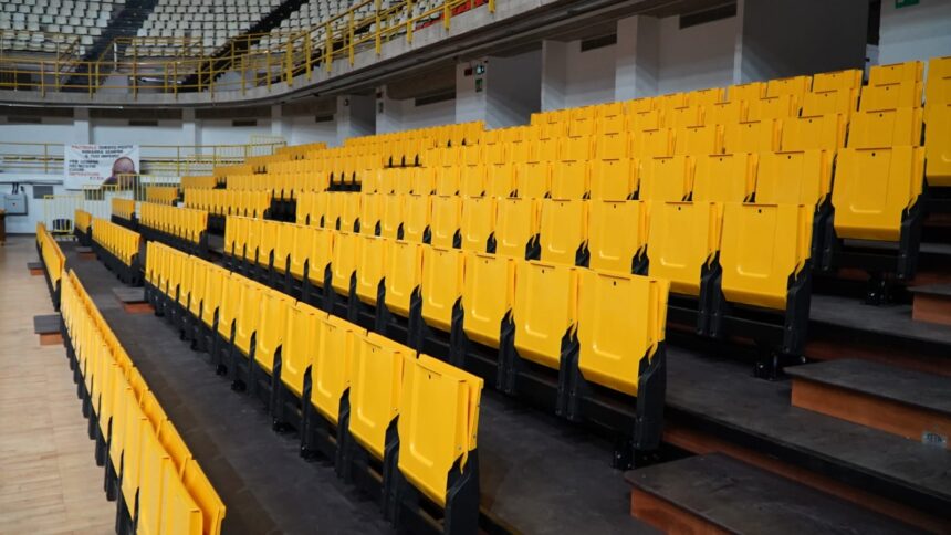 Oggetto dei lavori programmati al Palapentimele il rifacimento degli spalti della parte bassa del palazzetto, con il posizionamento di nuovi e più comodi seggiolini e tribune telescopiche retraibili con un sistema automatico a scomparsa che in appena 30 secondi è in grado di liberare il campo con ampi spazi per manifestazioni e concerti. Completamente rinnovata anche la tribunetta per la stampa, le panchine per le squadre e la postazione per gli arbitri, con l’acquisto di tutto il materiale necessario per lo svolgimento dell’attività agonistica.
