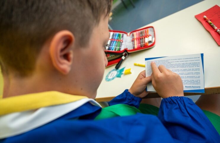 San Giovanni in Fiore, Succurro dona agli alunni una cartolina sul tema della collaborazione