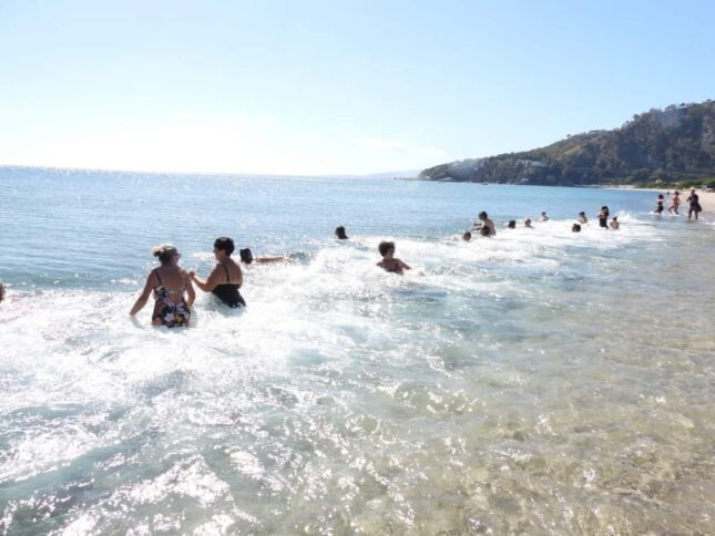 SQUILLACE “No all’eolico offshore selvaggio, sì alla tutela del mare e dell’ecosistema”. In centinaia oggi hanno partecipato sulla costa jonica catanzarese alla manifestazione “Un tuffo contro le pale” che si è svolta in contemporanea sulle spiagge di Squillace, Guardavalle e Cropani ma anche in altre località della Calabria – come Corigliano Rossano e Crotone – per protestare «contro l’invasione di progetti di impianti eolici in terra e in mare che rischiano di devastare definitivamente un territorio già ampiamente deturpato dalle pale di acciaio». A organizzare la protesta il “Coordinamento regionale Controvento”. Nel Catanzarese all’iniziativa hanno aderito tra gli altri, oltre a numerosi cittadini e associazioni, i Comuni di Catanzaro, Cropani, Gasperina, Guardavalle, Isca sullo Ionio, Palermiti, Petrizzi, Sant’Andrea Apostolo dello Jonio, Santa Caterina sullo Jonio, Satriano, Sellia Marina, Soverato, Squillace, Stalettì e Vallefiorita.