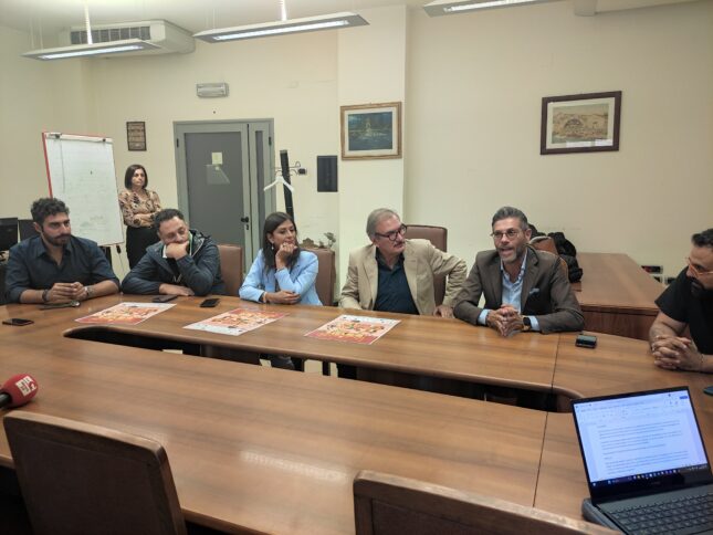 VIBO VALENTIA Oltre trenta cantine, cibo, artisti e spettacoli per le vie del centro storico. Quattro piazze coinvolte, centinaia di persone attese da tutta la Regione. E anche un accordo con il Museo per garantire ai turisti una visita gratuita alle mura greche. È stato presentato questa mattina nelle sale di Palazzo Luigi Razza “Vicoli DiVini”, l’evento vibonese per eccellenza dedicato alla degustazione di vini e prodotti della provincia. Organizzato dall’associazione Saturnalia, con il sostegno del Comune e di Gal Terre Vibonesi, si terrà il prossimo venerdì 4 ottobre. Un appuntamento ormai “annuale” arrivato all’ottava edizione, nonostante gli anni post-covid siano stati segnati da diverse difficoltà. Ma l’evento «deve tornare ad essere centrale per Vibo. Appena ci siamo insediati abbiamo subito contattato l’associazione e creato un tavolo tecnico per organizzarlo» spiega il consigliere comunale con delega allo spettacolo Francesco Colelli. La conferenza si è tenuta alla presenza del sindaco Enzo Romeo, dei rappresentanti dell’associazione Rosella Ruggiero e Christian Russo, del presidente di Gal Terre Vibonesi Vitaliano Papillo e del presidente Cna Giovanni Cugliari.