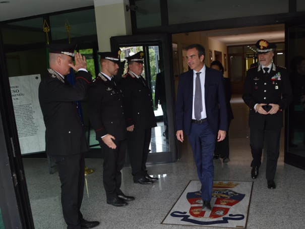 COSENZA Il Presidente della Regione Calabria, Roberto occhiuto, ha fatto visita al comando provinciale Carabinieri di Cosenza. Nel salutare il neo insediato comandante provinciale, colonnello Andrea Mommo, Occhiuto, spiega un comunicato dell’Arma, «ha incontrato i Comandanti delle Compagnie e del Reparto Territoriale di Corigliano-Rossano, nonché, gli Ufficiali della sede ed una rappresentanza di Comandanti di Stazione. Nel corso dell’incontro il Governatore, nel lodare il quotidiano servizio garantito dal personale dell’Arma dei Carabinieri, ha auspicato la prosecuzione di una simbiotica azione finalizzata al contrasto dell’illegalità diffusa, con particolare riferimento agli ambiti sanitario ed ambientale, al fine di porre le basi per la realizzazione di una efficace azione di deterrenza».