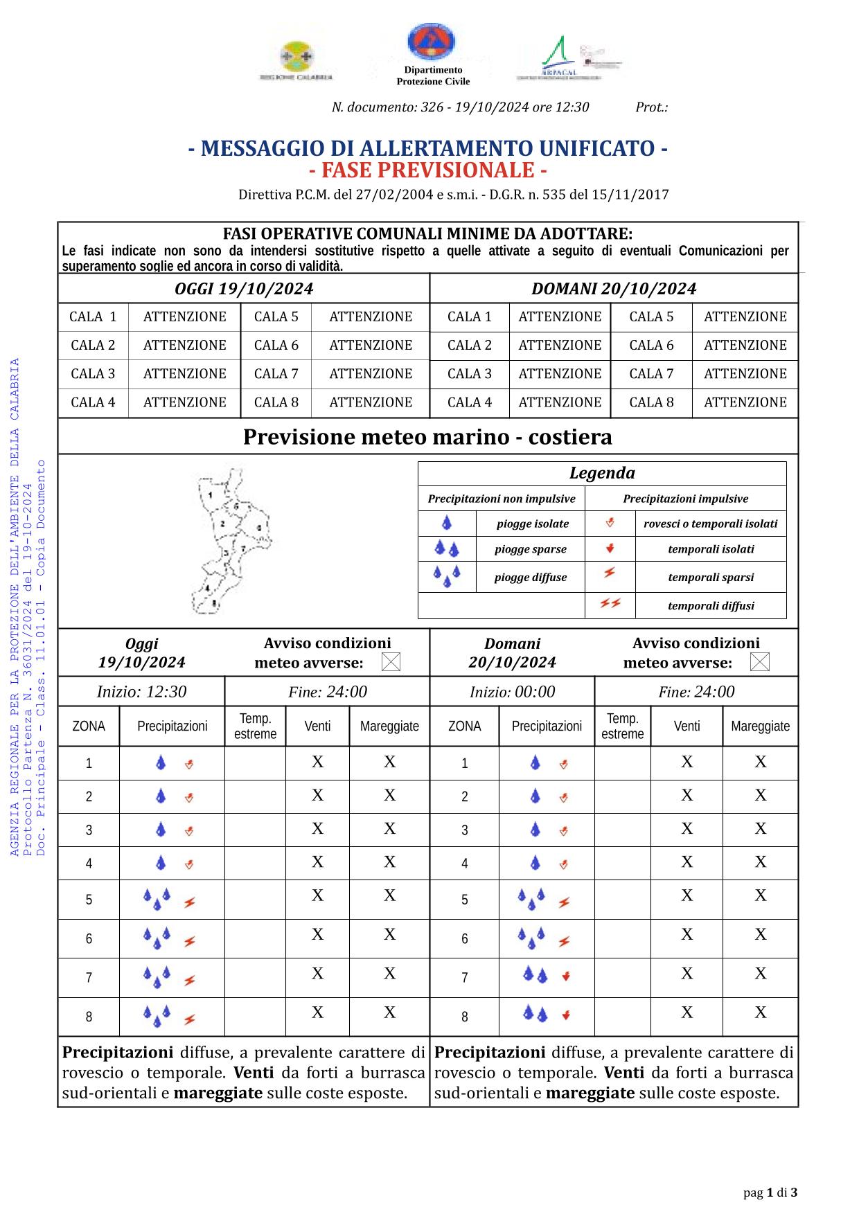 «Particolarmente abbondanti sono state le piogge registrate nelle stazioni pluviometriche di Bovalino Marina e Cardeto, ma anche di Petilia Policastro Pagliarelle: le cumulate hanno superato in 17 ore il valore di 100 mm. In figura 1 viene riportato l’andamento della cumulata di precipitazione. Numerosi sono stati i Comuni calabresi allertati nelle ultime 24 ore dal Centro Funzionale Multirischi di Arpacal in concorso con il Dipartimento della Protezione Civile della Regione Calabria. Nello specifico sono stati posti in stato di Allarme 46 comuni e 68 sono posti in Pre-allarme. Il resto dei Comuni calabresi sono stati tsti tutti in stato di Attenzione. Il Centro Funzionale Multirischi, che opera in regime di H24, continuerà a monitorare la situazione, in continuo contatto con il Dipartimento Nazionale e Regionale della Protezione Civile e con le Prefetture della Calabria».
