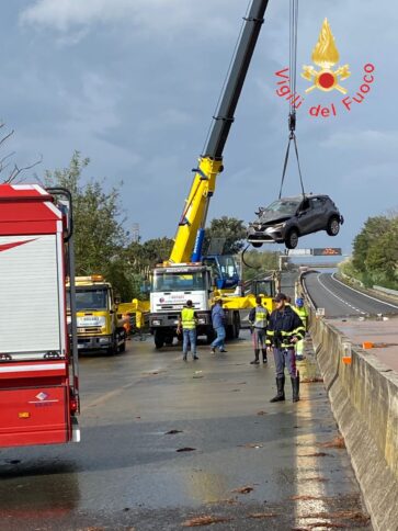 La strada è interrotta. La giovane di 25 anni all’interno della vettura tratta in salva da alcuni automobilisti presenti