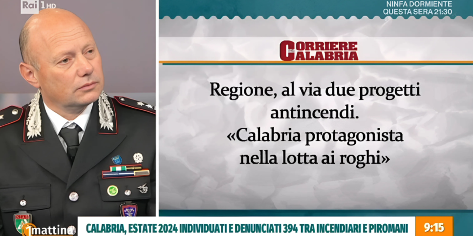ROMA «Grazie ai droni antincendio e ai due progetti della Regione Calabria il fenomeno degli incendi dolosi è stato contrastato, i piromani incendiari sono stati individuati e gli episodi sono diminuiti» : a parlare è il tenente colonnello Renato Sciunnach, comandante del Nucleo informativo antincendio boschivo del comando carabinieri tutela forestale e parchi, ospite oggi di Unomattina.