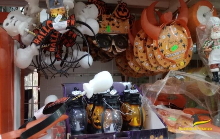 COSENZA Nell’ambito dell’intensificazione dell’azione di contrasto ai traffici illeciti disposta dal Comando Provinciale della Guardia di Finanza di Cosenza per i trascorsi festeggiamenti di Halloween e della festività di Ognissanti, le Fiamme Gialle cosentine hanno eseguito numerosi controlli, sequestrando oltre 30.000 prodotti non sicuri, tra cui oltre cento giocattoli. In particolare, nel corso di un controllo presso un’attività commerciale gestita da cittadini di etnia straniera, i Finanzieri della Tenenza di Cetraro hanno rinvenuto sugli scaffali a disposizione della clientela oltre 30.000 prodotti tra maschere, cappellini, accessori decorativi, adesivi e kit di perline per comporre collane, risultati mancanti di ogni indicazione in lingua italiana riferibile all’importatore/distributore, al luogo di produzione, al contenuto di materiali o sostanze pericolose e alle modalità di smaltimento.