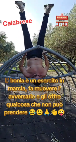 Il nome di “U Giappone” è noto ormai da tempo. Dei suoi successi da influencer se ne discute da anni, così come delle performance su TikTok dove sfoggia muscoli, passeggiate a mare o per il centro, oltre a pranzi e cene nei locali alla moda di Lamezia Terme. In un video, tanto per citarne alcuni, si mostra a testa in giù in una esibizione di forza con una massima in sovraimpressione che parla di ironia oppure mentre assaggia una portata di carne sfoggiato un orologio d’oro (forse solo dorato). In un altro video, appeso ad un gazebo di un locale mentre esegue i soliti esercizi fisici, se la prende con i “leoni da tastiera” che lo avrebbero offeso nascondendosi dietro profili falsi. Insomma, ce n’è per tutti i gusti seguendo comunque una trama invisibile ma ben definita: l’uomo d’onore che non ha paura di nessuno, soprattutto dei nemici (che non si sa bene chi siano).