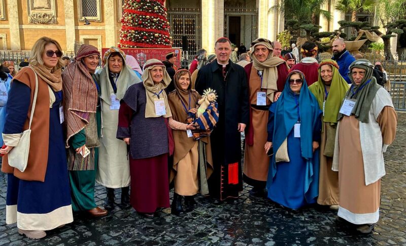 Dopo il saluto e la benedizione del Pontefice, la rappresentanza del Presepe Vivente di Acri si è unita ai circa 700 figuranti in costume, provenienti da tutta Italia, sul sagrato della Basilica di Santa Maria Maggiore per omaggiare la reliquia della Sacra Culla.