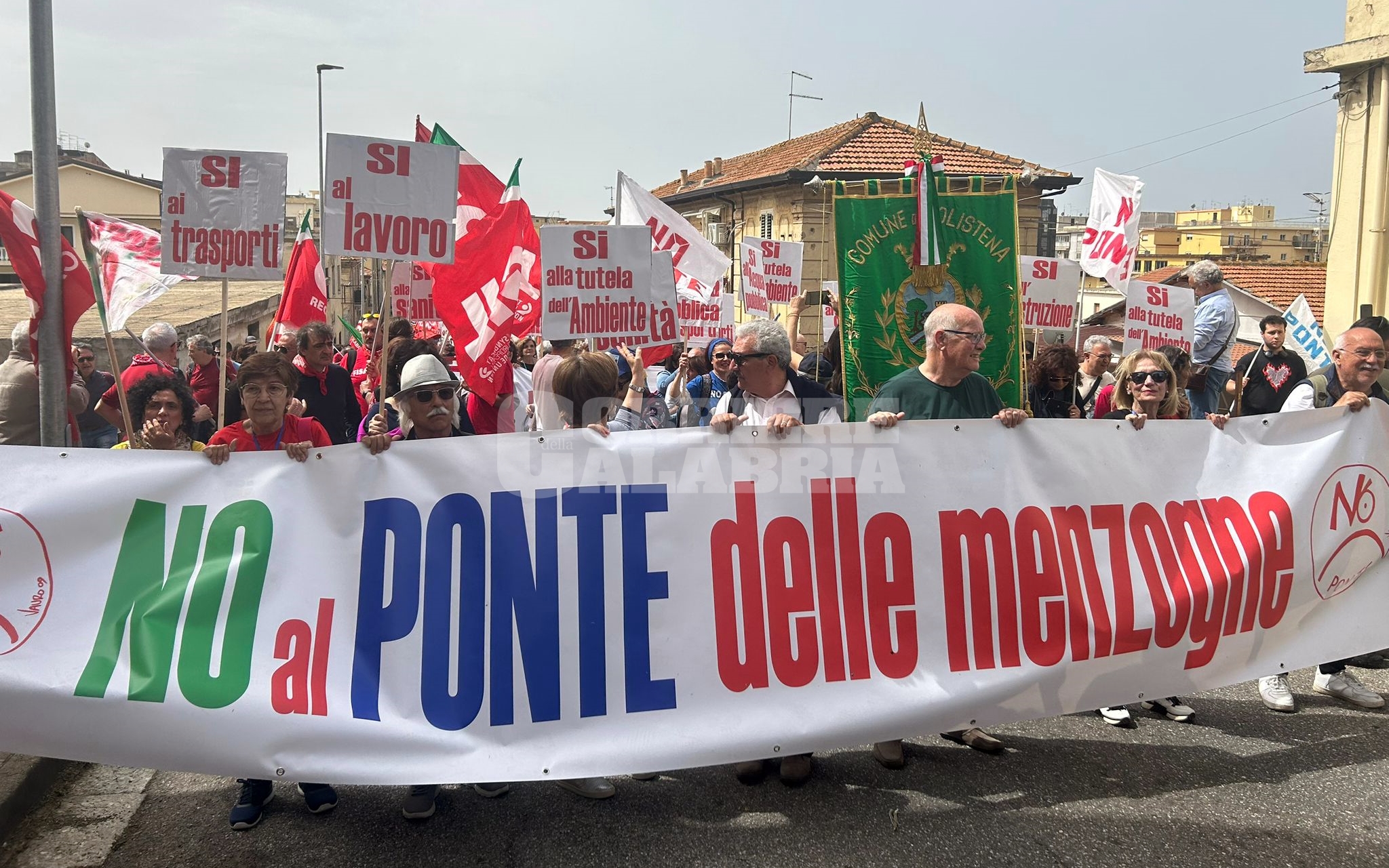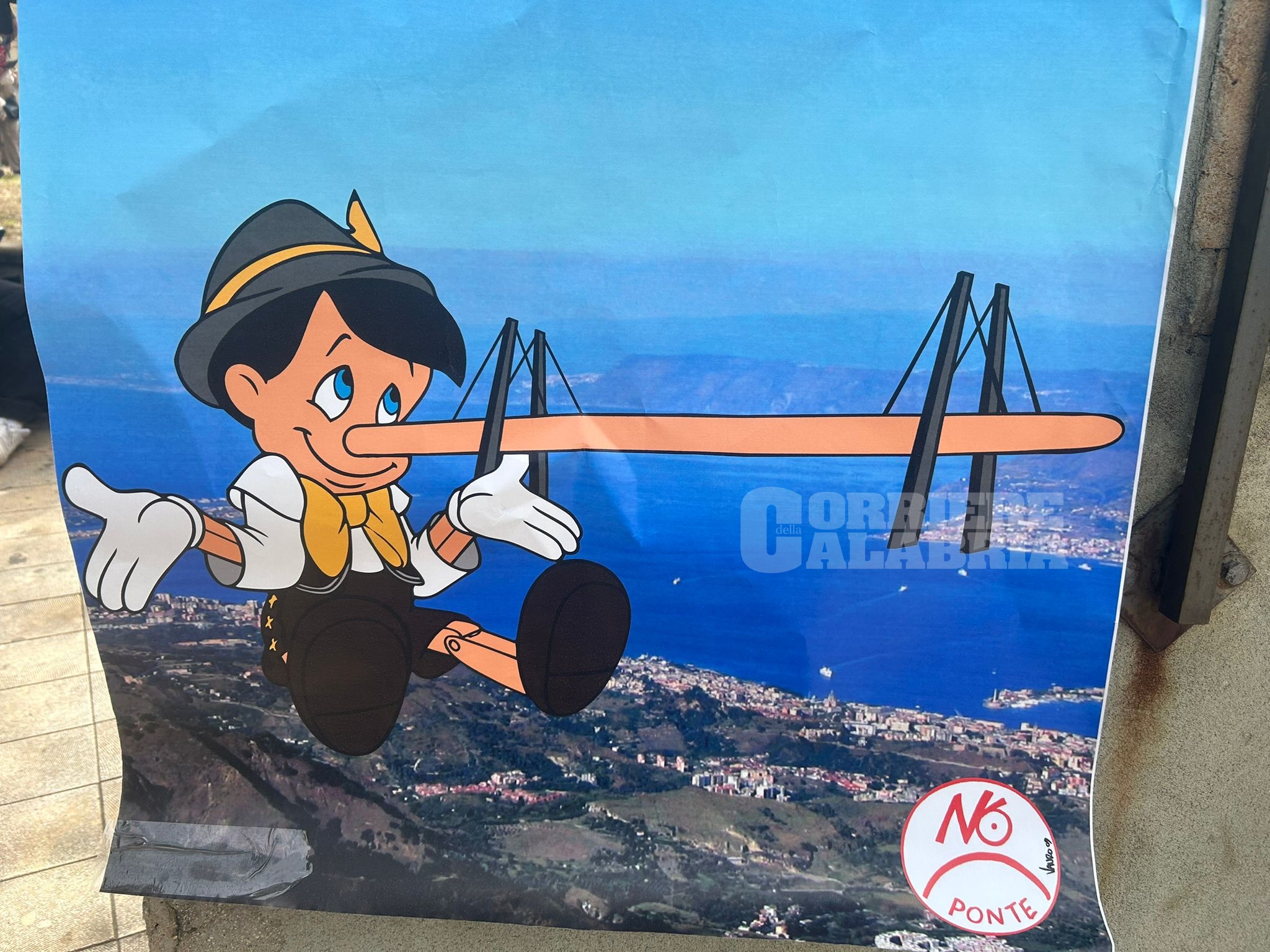 Un coro unanime contro il progetto da 13,5 miliardi di euro, si levò nella città reggina. In centinaia in marcia: in testa la frase “No al ponte delle menzogne”. Tra i tanti striscioni anche uno raffigurante Pinocchio con il suo lunghissimo naso a unire la sponda calabrese e quella siciliana, al posto dell’immagine del ponte