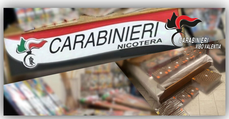 • A Nicotera, i militari della locale Stazione hanno sequestrato circa 50 kg di fuochi d’artificio di categoria F2, privi della necessaria licenza prefettizia, trovati in vendita abusiva all’interno di un negozio.