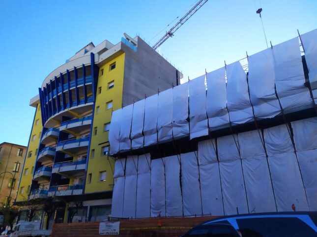 Nella foto di copertina la Torre Arborea in costruzione nel tratto sud di viale Mancini/via Popilia