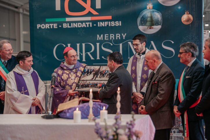 Promossa da Lameziaeuropa, Diocesi di Lamezia Terme, Comune di Lamezia Terme e Caritas, si è svolta nell’area industriale Papa Benedetto XVI di Lamezia Terme, presso il nuovo stabilimento produttivo della società T&T Porte – Blindati – Infissi di Gianni Torcasio, società insediata nell’area che ha dato ospitalità all’evento, la celebrazione eucaristica natalizia presieduta dal Vescovo di Lamezia Terme S. E. Mons. Serafino Parisi dedicata al mondo del Lavoro nell’ambito della quinta edizione di “Natale Insieme per il Lavoro e la Carità”.