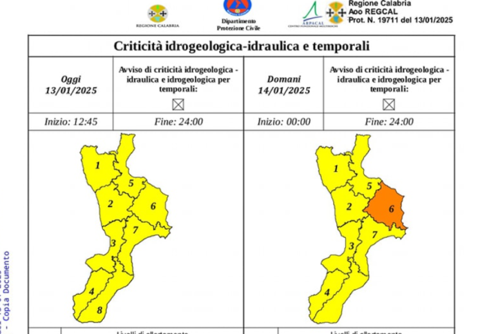 È stata, inoltre, disposta a scopo precauzionale, per la giornata del 14 gennaio 2025 la chiusura della Villa Comunale, di parchi e giardini, del cimitero cittadino e del cimitero di Papanice.