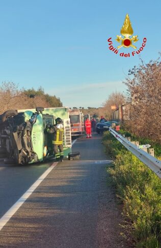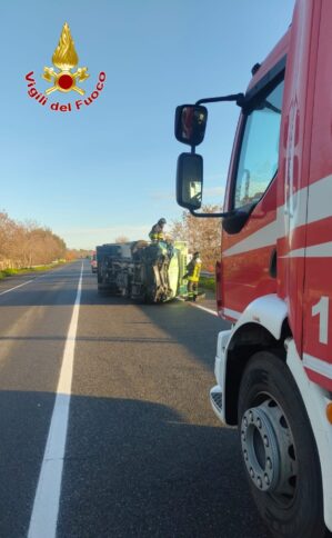CIRÒ MARINA Stamattina alle ore 7:30 una squadra dei vigili del fuoco del distaccamento di Cirò Marina è intervenuta per un incidente stradale sulla statale 106 direzione Taranto al km 281. Sul posto vi era una Fiat Punto che si era scontrata con un furgone Iveco, lo stesso dopo lo schianto si è capovolto su un lato.