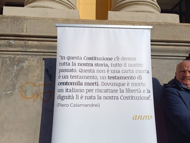 «Grazie innanzitutto per la vostra presenza. Noi ci riuniremo oggi qui, che è il nostro posto di lavoro, e porteremo in mano gli strumenti con cui lavoriamo, in particolare la Costituzione». Lo ha detto a margine della protesta il sostituto procuratore della Dda di Catanzaro, Graziella Viscomi, che ha parlato poi di «protesta simbolica» che non arresta il dialogo «che continuerà sempre, ma in questo momento noi vogliamo far capire anche e soprattutto ai cittadini che questa protesta è per loro». «La riforma della magistratura, non la riforma della giustizia come si sta dicendo – ha sottolineato – è profondamente sbagliata. Ha come obiettivo finale quello di porre il pubblico ministero sotto l’esecutivo e questo sarà un danno enorme per il cittadino».