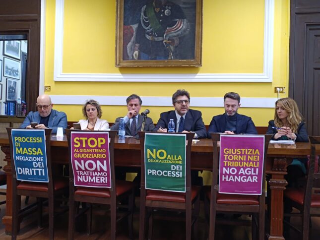 La Camera Penale di Catanzaro, come tutte le Camere territoriali, ha aderito all’iniziativa del Coordinamento Regionale per denunciare e protestare contro questa pratica che «impone la migrazione dei cittadini imputati nel processo e dei loro avvocati presso sedi lontane e, più in generale, per affermare la necessità di ritrovarsi dentro il comune perimetro costituzionale del giusto processo, scolpito nell’art. 111 Cost., ponendo così fine alla logica della perenne emergenza».