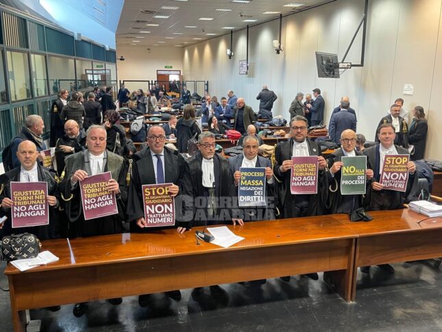 Questa mattina, in apertura dell’udienza, il coordinatore regionale avvocato Giuseppe Milicia ha letto un documento alla presenza dei Presidenti delle CP calabresi, Francesco Iacopino, Renzo Andricciola, Giuseppe Bruno, Pino Aloi, Antonio Alvaro e Francesco Siclari. Tutto il collegio difensivo ha aderito alla manifestazione di protesta. «Abbiamo subito il trattamento previsto per i sospettabili quando ci hanno costretto a lasciare l’auto in aperta campagna lontano dai parcheggi del l’aula bunker di Lamezia. Abbiamo subito il trattamento degli asserviti quando hanno imposto l’agenda ossessiva da 170 udienze al Panno in media per sostenere la marcia forzata a garanzia della permanenza in vincoli dei presunti innocenti». «Abbiamo subito il trattamento degli invisibili senza diritto di interloquire nemmeno sulle precondizioni per l’esercizio dignitoso dei diritti (affievoliti), quando ci hanno negato anche l’opportunità di esprimere il nostro punto di vista nelle sedi nelle quali venivano messe a punto le inusitate distopiche soluzioni per rimediare alla inagibilità dell’hangar lametino. Sulla testa degli imputati e dei loro avvocati anche l’obbligata migrazione di massa verso sedi lontane. Sui loro diritti si scarica il fallimento dell’organizzazione militare della giustizia penale calabrese». Ed ancora: «Abbiamo accettato le regole aberranti del processo dematerializzato e ci hanno negato anche i “diritti minorali” contemplati dal simil processo tecnologico della contemporaneità: nel sistema di gestione militare dei maxi, i numerosi colleghi che hanno chiesto di partecipare al processo a distanza, prima hanno scoperto una nuova regola, quella dell’avvocato da collegare dal carcere più vicino a casa sua (anziché dallo studio professionale come previsto dalla norma); poi, 48 ore prima dell’inizio della causa, si son visti revocare l’umiliante invito a presentarsi in carcere. Ma non perché melius perpensa re sia apparsa illegale l’escogitazione, ma perché il DAP oltre a non disporre di risorse sufficienti ritiene sconsigliabile, perché pericoloso per la sicurezza, l’andirivieni di avvocati dalle salette dedicate. Dovremmo averne abbastanza». Dopo la lettura del documento, tutti i difensori sono usciti dall’aula in segno di protesta.