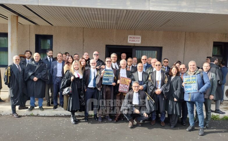 CATANIA In concomitanza con l’inizio del processo d’appello “Rinascita-Scott” presso l’aula bunker di Catania, il Coordinamento delle Camere Penali Calabresi ha indetto l’astensione di tutte le Camere Penali della regione per denunciare la pratica sistematica dei maxi processi e la conseguente lesione del diritto di difesa delle persone imputate. E questa mattina, all’inizio del processo, gli avvocati penalisti hanno mostrato alcuni cartelli.