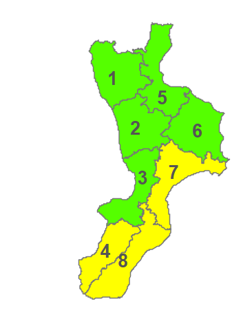 Nel bollettino della Protezione Civile interessata la parte meridionale della regione. Diramata allerta arancione in Sicilia