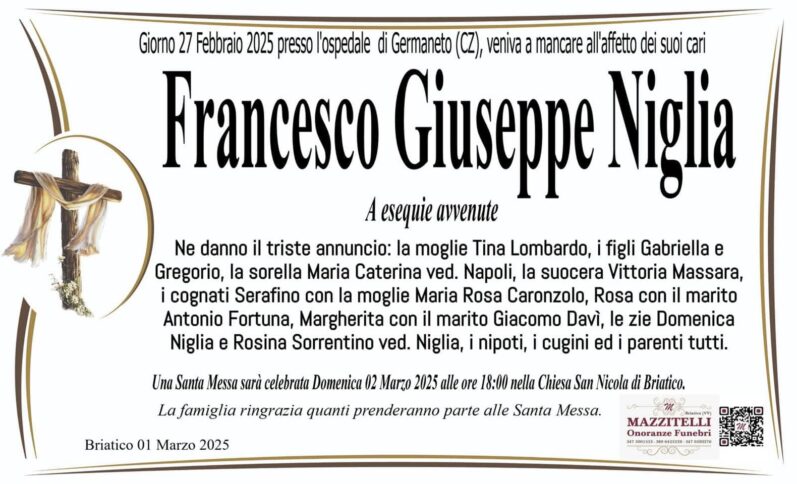 È morto in ospedale lo scorso 27 febbraio Francesco Giuseppe Niglia, 77 anni, ritenuto vicino alla cosca di ‘ndrangheta degli Accorinti con influenze sul territorio di Briatico. “Pino u cani” era attualmente imputato nel processo d’appello in Rinascita Scott, dopo essere stato condannato a 16 anni di carcere in primo grado nella sentenza del 20 novembre 2023. In precedenza, Niglia era stato assolto nel processo Odissea, scaturito dall’operazione scattata nel 2006, dove era accusato di usura. Il figlio è Gregorio Niglia alias “Lollo”, condannato in appello nell’abbreviato di Rinascita Scott a 20 anni di carcere e ritenuto «sodale di Peppone Accorinti». Di loro hanno parlato anche i pentiti Antonio Accorinti, Emanuele Mancuso, Raffaele Moscato e Andrea Mantella, individuandoli come soggetti «legati» a Peppone Accorinti e al locale di Zungri.