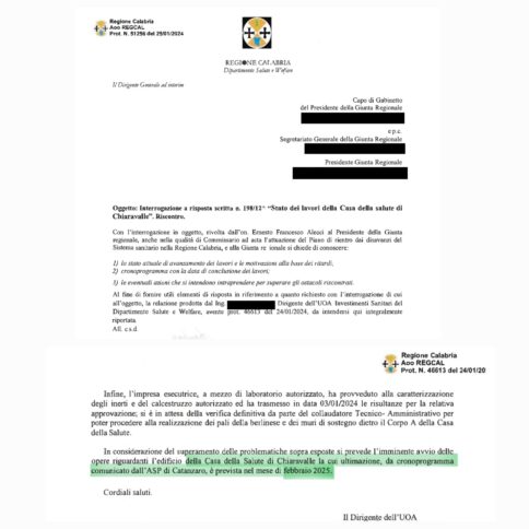 «Parole inequivocabili – si legge – che però non trovano alcun riscontro nella realtà, perché dopo ben più di un anno da quella risposta, come ho potuto verificare attraverso un sopralluogo, la nuova Casa della Salute di Chiaravalle è ben lontana dalla sua entrata in servizio. Mentre gli abitanti della cittadina e del comprensorio sono costretti a rivolgersi alla “vecchia” Casa della Salute ormai fatiscente e inadeguata. Solo il grande impegno dei medici e del personale sanitario presente riesce, infatti, a garantire una buona qualità nelle prestazioni erogate. Periodicamente assistiamo a spot mediatici su nuovi servizi, nuovi reparti, nuovi progetti, ma i risultati concreti sono sotto gli occhi di tutti: approssimazione, mancanza di programmazione, strutture datate e strumentazioni malfunzionanti, medicina territoriale e servizi di emergenza-urgenza in frantumi, migrazione sanitaria in aumento. Il reality show magistralmente orchestrato su media e social network dalla governance regionale crolla di fronte ai casi come quelli di Chiaravalle e quelli che certamente avremo modo di evidenziare, purtroppo per noi calabresi, nelle prossime settimane attraverso una minuziosa attività direttamente sui territori. Situazioni come queste dimostrano l’immobilismo atavico in cui ha versato e versa la Sanità nella nostra regione. Con la nomina a Commissario per l’emergenza del sistema ospedaliero, il Presidente Occhiuto ha ottenuto i “superpoteri”, ora non ci saranno più alibi o scuse!».