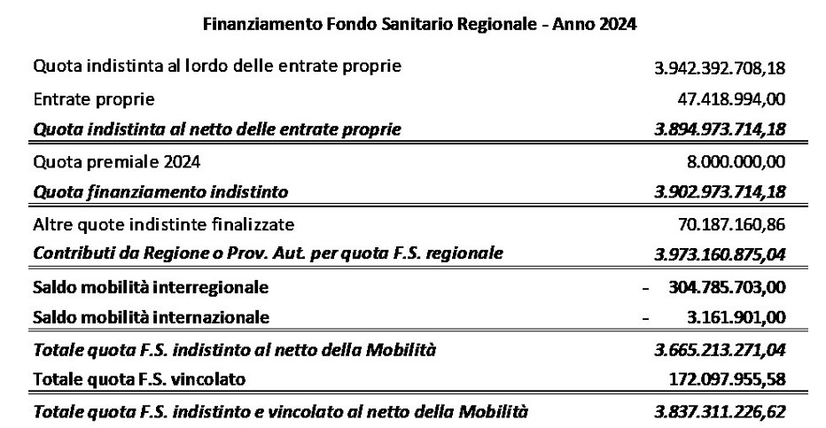 CATANZARO Il presidente della Regione Calabria Roberto Occhiuto, nella sua qualità di commissario della sanità calabrese ha adottato il decreto con cui viene ripartito il Fondo sanitario regionale a valere sul 2024: si tratta di un atto fondamentale perché rappresenta il punto di riferimento per le Asp e le aziende ospedaliere calabresi al momento della stesura degli atti di programmazione e dei documenti contabili. L’ammontare complessivo regionale del fondo (fra fondo indistinto e quello a destinazione vincolata) è pari a 3 miliardi e 973 milioni di euro. Questo il riparto: Asp di Cosenza 1,26 miliardi; Asp di Crotone 396 milioni; Asp di Catanzaro 673 milioni; Asp di Vibo Valentia 300 milioni; Asp di Reggio Calabria poco più di un miliardo; Annunziata di Cosenza 64,4 milioni; Dulbecco di Catanzaro 122 milioni; Gom di Reggio Calabria 70,8 milioni. Per la Gestione sanitaria accentrata previsti 70,9 milioni, per Azienda Zero poco più di 700mila euro. Sul riparto ovviamente pensa sempre il saldo negativo della mobilità passiva, vale a dire il costo delle cure dei calabresi fuori regione, costo quantificato in 304,78 milioni (nel precedente riparto era quantificato in 252 milioni). (a. cant.)