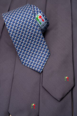 Per l’occasione, Talarico ha realizzato due cravatte in pura seta di altissima qualità, espressione di artigianalità e cura per il dettaglio: una prima versione decorata con l’immagine stilizzata del bonsai, simbolo iconico della cultura giapponese e metafora di equilibrio, crescita e connessione con la natura, Simbolo di armonia ed equilibrio, il bonsai rappresenta – nella cultura orientale e in particolare in quella del Giappone – un mezzo di collegamento tra uomo, arte, natura e divinità. In questa speciale cravatta Talarico, la presenza del bonsai dà concretezza all’idea de “L’arte rigenera la vita”, espressione concettuale che ha accompagnato la costruzione del Padiglione Italia all’Expo 2025 Osaka. Una seconda versione in tinta unita blu, elegante e sobria, pensata per rappresentare la versatilità e la sobrietà dello stile italiano. Entrambe le cravatte sono impreziosite dalla presenza del logo ufficiale del Padiglione Italia, visibile come elemento distintivo e rappresentativo dell’identità nazionale.