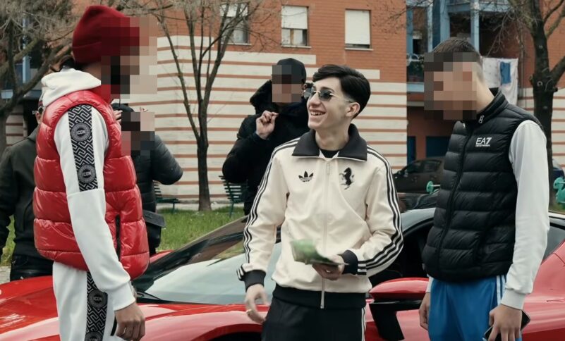 Il suo nome qualche giorno aveva già sollevato non poche polemiche a Latina. Il suo nuovo videoclip “Family” non è soltanto l’esibizione del solito campionario del genere – banconote e auto di lusso – ma c’è molto di più. Compaiono, infatti, figli e nipoti di esponenti della criminalità locale legati alle famiglie Di Silvio e Travali, tra cui soprattutto Ferdinando Di Silvio, noto come “Pescio”, sorvegliato speciale, e alcuni minorenni imparentati con noti boss della zona. Molto controverso anche il testo di quest’ultimo brano. Ci sono frasi del tipo “ragazzi seri che anche dentro non fanno mai i nomi” e “odiamo il magistrato/la legge è questo stato”.