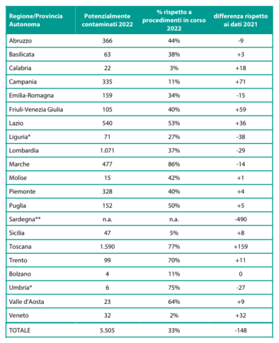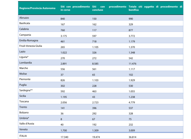 Secondo i dati, 30 siti contaminati e 22 potenzialmente contaminati. Ma in questo momento nessun intervento in corso