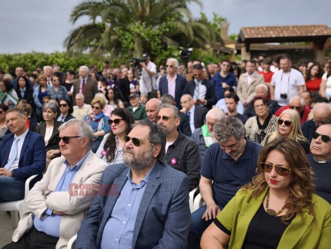 «Chi voleva farmi tacere ha fallito. Io parlo» recita dal palco Maria, interpretata in un doloroso monologo da Lucia Limonta, che insieme a Simone Tudda, Anna Manella e Daniele Molino dell’associazione Cco hanno raccontato storie di resistenza alla criminalità. Di fronte tante istituzioni: il sottosegretario all’interno Wanda Ferro, il procuratore Camillo Falvo, le autorità e le istituzioni locali e regionali. Ci sono anche Gaetano Saffioti e Antonino De Masi, imprenditori che condividono con Maria lo spirito di libertà e ribellione alla criminalità organizzata. Presenti le associazioni come Libera, Goel ed esponenti della società civile, tra cui don Giacomo Panizza. Tra il pubblico anche Brunori Sas, accompagnato dai rappresentanti di Una, Nessuna, Centomila. Anche il ministro Carlo Nordio ha ricordato, tramite una lettera, la scomparsa avvenuta 9 anni fa.