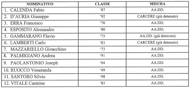 Il provvedimento cautelare di oggi riguarda coloro ai quali non è stata riconosciuta una diretta appartenenza al gruppo criminale. Sono ritenuti i ‘terminali’ del clan, essendo dediti alle cessioni dello stupefacente. Nel corso dell’attività investigativa, sono stati arrestate in flagranza di reato quattro persone nonché sottoposti a sequestro 8 chili di hashish e 600 grammi di cocaina. Inoltre, nella disponibilità di uno degli indagati, è stata trovata una pistola di fabbricazione russa con matricola abrasa con all’interno del serbatoio sette proiettili e la somma di 6.155 euro. L’uomo è stato arrestato in flagranza di reato per detenzione di arma clandestina. (Ansa)
