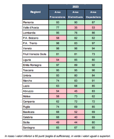 La Regione guadagna oltre 20 punti nella prevenzione e resta insufficiente solo nell’area distrettuale