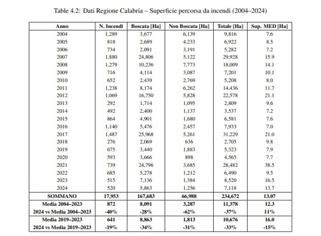 CATANZARO Dalla logica dell’emergenza a quella della prevenzione, nell’ambito della strategia “Tolleranza Zero”. In Cittadella la Regione Calabria presenta il Piano antincendio Aib 2025 – già anticipato nei giorni scorsi nei suoi contenuti dal Corriere della Calabria – partendo dai risultati positivi dell’azione messa in campo dalla Giunta in questi ultimi anni. Questi i dati diffusi oggi contenuti nel Piano Aib: «Nel 2024 sull’intero territorio regionale si sono verificati 520 incendi `boschivi (perimetrati dai carabinieri forestali) che hanno percorso una superficie complessiva di 7.118 ettari, di cui 5.863 boscati e 1.256 non boscati. Rispetto alla media del periodo 2004-2023 il numero d’incendi è risultato inferiore di circa il 40%, mentre le superfici totali percorse dal fuoco ridotte di circa il 37%. ` Rapportando il dato rispetto alla media degli ultimi cinque anni il numero d’incendi si e ridotto del 19% rispetto alla media e la superficie totale percorsa da incendi si e ridotta di circa il 33%».
