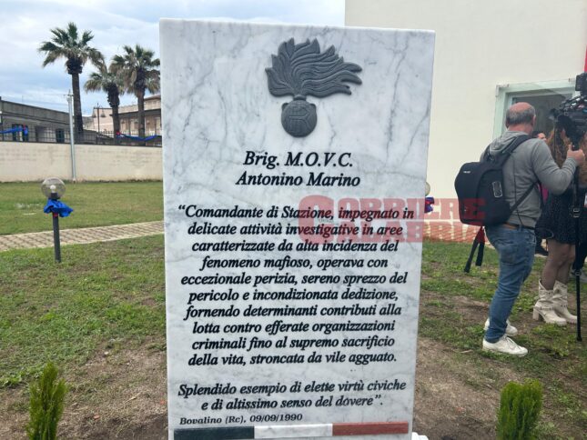 Il ministro della Difesa Guido Crosetto, lontano per impegni istituzionali, ha inviato un messaggio in cui ha sottolineato l’importanza di onorare la memoria del brigadiere Marino, ucciso nel 1990 a Bovalino Superiore per il suo impegno di contrasto ai clan che aveva portato avanti negli anni precedenti, in particolare nella Locride, in qualità di comandante della stazione di Platì, prima di essere trasferito a San Ferdinando. Un uomo, ha sottolineato Crosetto, che «ha contrastato con coraggio la criminalità organizzata, compiendo una battaglia di civiltà che ha portato avanti fino all’estremo sacrificio». E poi il messaggio rivolto alla famiglia del militare, alla moglie Vittoria e ai figli Francesco e Antonino: «Vi rivolgo parole che nascono dal cuore: grazie per essere riusciti a trasformare il dolore in una forza immensa».