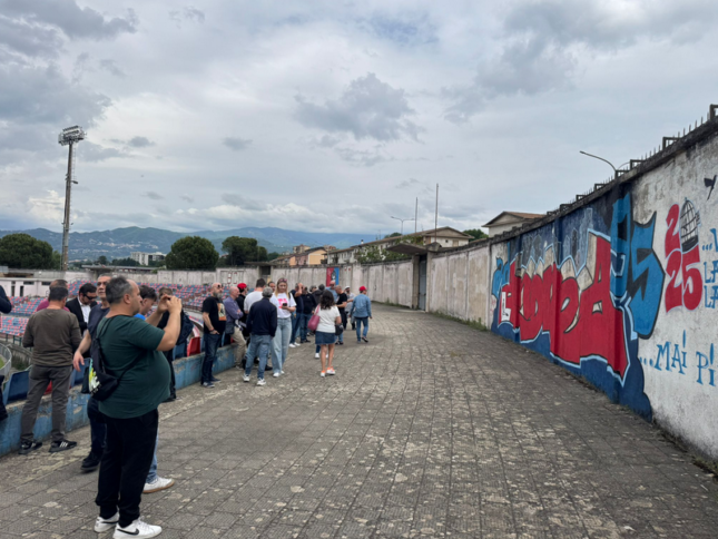 COSENZA Si è svolta oggi, nella suggestiva cornice della Curva “Bergamini” dello stadio San Vito-Marulla, l’inaugurazione del murales restaurato “Ad Andrea”, tributo al giovane ultrà del Cosenza Andrea Ominelli, scomparso prematuramente nel 1995 all’età di soli 30 anni. L’opera, realizzata originariamente da Simone Borselli e Giuseppe Gaudio poco dopo la morte di Ominelli, è stata riportata al suo splendore grazie al lavoro degli artisti Amaele Serino, Carmelo Gervasi e lo stesso Gaudio. Accanto al murales, è stato dedicato un pensiero anche a Salvatore Iaccino, noto tra i tifosi come “Uccello”, figura storica della tifoseria rossoblù venuta a mancare recentemente. La cerimonia ha richiamato un folto pubblico di tifosi e cittadini, a testimonianza del forte legame tra la comunità e i suoi protagonisti, non solo sportivi ma anche umani.