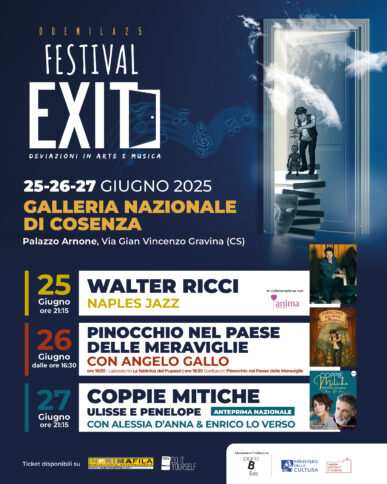 Quelli in programma a Cosenza sono solo i primi tre appuntamenti del festival. EXIT proseguirà nei mesi successivi, portando in altri luoghi della Calabria nuove produzioni artistiche e nuove occasioni di confronto, sempre nel segno della valorizzazione del territorio e della sperimentazione culturale. EXIT non è solo un festival, ma un progetto culturale che invita a ripensare il modo in cui si vive l’arte e la musica, valorizzando i territori, riscoprendone le architetture e le storie. Con un format itinerante che predilige come scenari i beni ambientali e culturali della Calabria, EXIT si conferma come uno dei principali strumenti di marketing territoriale della regione, capace di attrarre turismo, investimenti e attenzione nazionale.