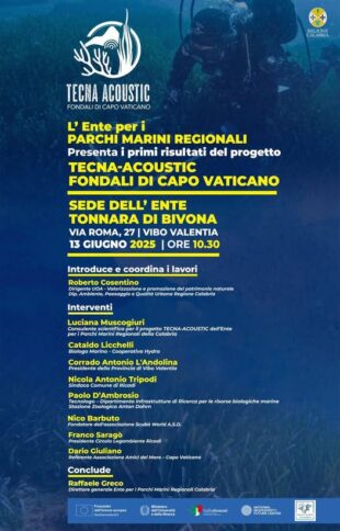BIVONA L’Ente per i Parchi marini regionali (Epmr) presenta i primi risultati del progetto “Tecna acoustic” relativo ai fondali di Capo Vaticano. Si tratta di un progetto finanziato dal National Biodiversity Future Center con risorse Pnrr, finalizzato a controllare lo stato di salute del Coralligeno e della Posidonia oceanica, habitat protetti. L’iniziativa di presentazione si terrà venerdì 13 giugno alle 10:30 nella sede dell’Ente, sita presso la Tonnara di Bivona. I lavori, coordinati dal dirigente dell’Unità operativa autonoma Valorizzazione e promozione del patrimonio naturale del Dipartimento regionale Ambiente, Roberto Cosentino, avranno come relatori: la consulente scientifica del progetto Tecna acoustic, Luciana Muscogiuri; il biologo marino della cooperativa Hydra, Cataldo Licchelli; il presidente della Provincia di Vibo, Corrado L’Andolina; il sindaco di Ricadi, Nicola Tripodi; il tecnologo del Dipartimento Infrastrutture di ricerca per le risorse biologiche marine della Stazione zoologica Anton Dohrn, Paolo D’Ambrosio; il fondatore dell’associazione Scuba world, Nico Barbuto; il presidente del circolo Legambiente di Ricadi, Franco Saragò; il referente dell’associazione Amici del mare di Capo Vaticano, Dario Giuliano. Le conclusioni saranno affidate al direttore dell’Ente per i Parchi marini regionali, Raffaele Greco.