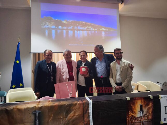PIZZO È stato un «amore a prima vista» tra Roby Facchinetti e il tartufo di Pizzo, il gelato tipico napitino che nel 2023 aveva stregato il celebre artista e musicista dei Pooh tanto da definirlo «il dolce più buono del mondo». Quel post, rilanciato sui social, aveva raggiunto decine di migliaia di visualizzazioni e apprezzamenti, promuovendo così – come scritto nella delibera – «l’immagine turistica e culturale della città, valorizzando uno dei suoi simboli più riconosciuti». Il maestro Facchinetti da allora è tornato più volte in Calabria, affascinato da «un angolo di terra veramente magico». Un legame profondo, soprattutto, con la città di Pizzo, che ieri ha deciso di conferirgli la cittadinanza onoraria per la sua grande carriera artistica e per aver contribuito a diffondere l’immagine e il patrimonio della meravigliosa città napitina. La cerimonia, presieduta dal presidente del Consiglio comunale Giò Puglisi, si è svolta nel Palazzo della Cultura, dove l’artista ha firmato le copie del suo nuovo album “Parsifal – L’uomo delle stelle”, prima di spostarsi al Castello Murat. Qui, ad attenderlo, tutti maestri gelatai di Pizzo che hanno donato una degustazione del «dolce più buono al mondo». Presente anche il maestro orafo Gerardo Sacco, che ha donato una delle sue opere al maestro Facchinetti.