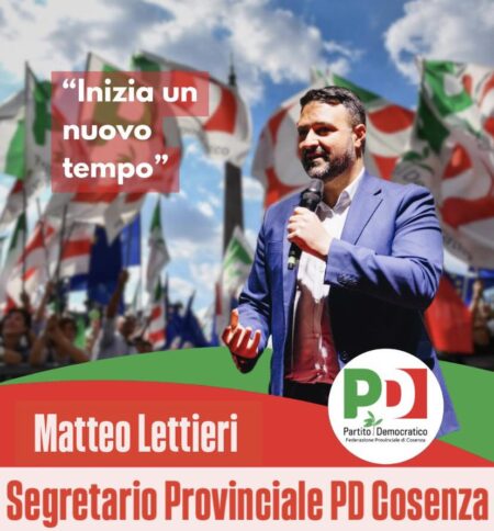«È giunto un tempo nuovo: Matteo Lettieri ha vinto la sfida congressuale in provincia di Cosenza! Dai dati completi in nostro possesso, con oltre 1200 voti, gli iscritti al Partito Democratico hanno premiato la nostra mozione congressuale “Innovazione, Comunità e Territori”» scriveva ieri la componente che fa capo al sindaco di Celico. «Una vittoria netta conquistata in tutta la nostra ampia provincia di Cosenza, un consenso diffuso, largo e capillare che premia la volontà di avviare un nuovo corso politico che metterà al centro gli iscritti e i territori. Ringraziamo i tanti militanti che con spirito di abnegazione si sono resi protagonisti e partecipi di una nuova fase politica premiata largamente dai circoli di base. Il nostro augurio sarà quello di ricostruire un Partito unito, forte e radicato nei territori, punto di riferimento del centrosinistra calabrese e cosentino» conclude il comitato per Matteo Lettieri Segretario.