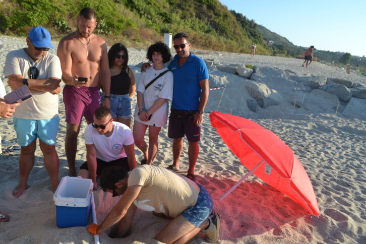 Nel corso della giornata, grazie alla professionalità di Pietro Giovannelli, operatore specializzato titolare di autorizzazione in deroga del MASE, del supporto offerto dal Sindaco Antonio Landro e dal Vice Sindaco Tommaso Belvedere e dall’attivismo dei numerosi soci del Circolo Legambiente Ricadi, si è proceduto alla messa in sicurezza e al trasferimento del nido sulla spiaggia di Riaci che, per l’esperienza maturata, si è rivelata idonea a tal fine. Lo scorso anno, infatti, nello stesso luogo era stato spostato un altro nido la cui collocazione naturale rappresentava un concreto rischio di insuccesso. Grazie alle attenzioni ricevute e alla idoneità del sito è stato possibile ottenere la schiusa di 79 uova che, altrimenti, non sarebbe potuta avvenire.