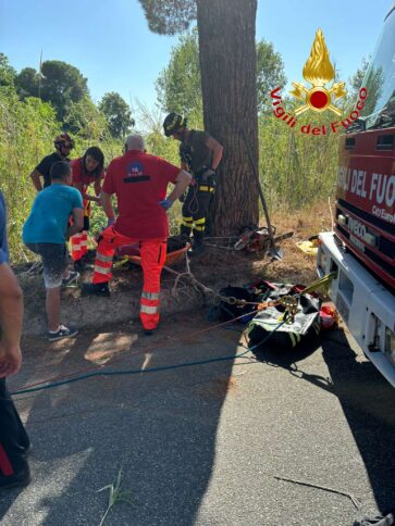 Dopo aver raggiunto il malcapitato, non senza difficoltà dovute alla presenza di una folta vegetazione, i Vigili del fuoco lo hanno stabilizzato sulla tavola spinale.
