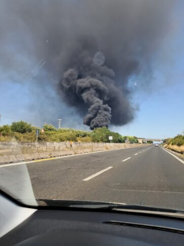 LAMEZIA TERME Un grosso incendio è divampato nel primo pomeriggio a Lamezia Terme sud, a ridosso della Statale 280 dei due Mari, zona Rotoli-Palazzo-Frasso. Secondo quanto appreso, le fiamme si sono sviluppate all’interno e all’esterno di un capannone di un’azienda che si interessa di raccolta rifiuti, la “Ecologia Oggi”. Il rogo ha coinvolto prevalentemente frazioni secche riciclabili, in particolare plastica, carta e cartone. L’intensa colonna di fumo nero visibile a distanza suggerisce la combustione di materiali polimerici e composti organici potenzialmente in grado di generare emissioni inquinanti.