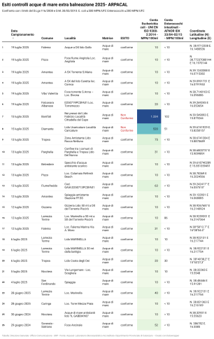 Esiti controlli acque di mare extra balneazione 2025- ARPACAL
