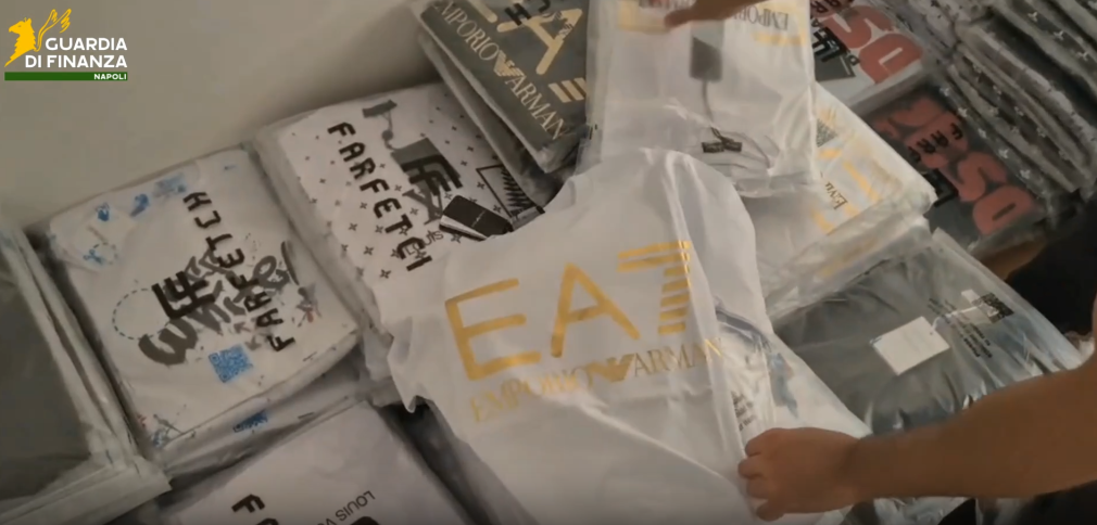 Presso il locale le Fiamme Gialle hanno sequestrato un totale di 65 mila capi di abbigliamento contraffatti, principalmente t-shirt, felpe, tute e sneakers che, per il tipo di tessuto, foggia ed etichette, risultavano del tutto identici a quelli originali. Gli articoli, catalogati per marca e modello, rimandavano a oltre 40 “brand” dell’alta moda come Gucci, Fendi, EA7 e Louis Vuitton.