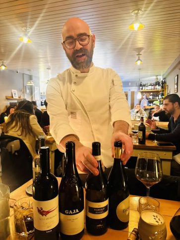 Nella foto di copertina Roberto Mungo al banco di A Fianco, vineria situata accanto al ristorante Grano (ph. The Irish Times)