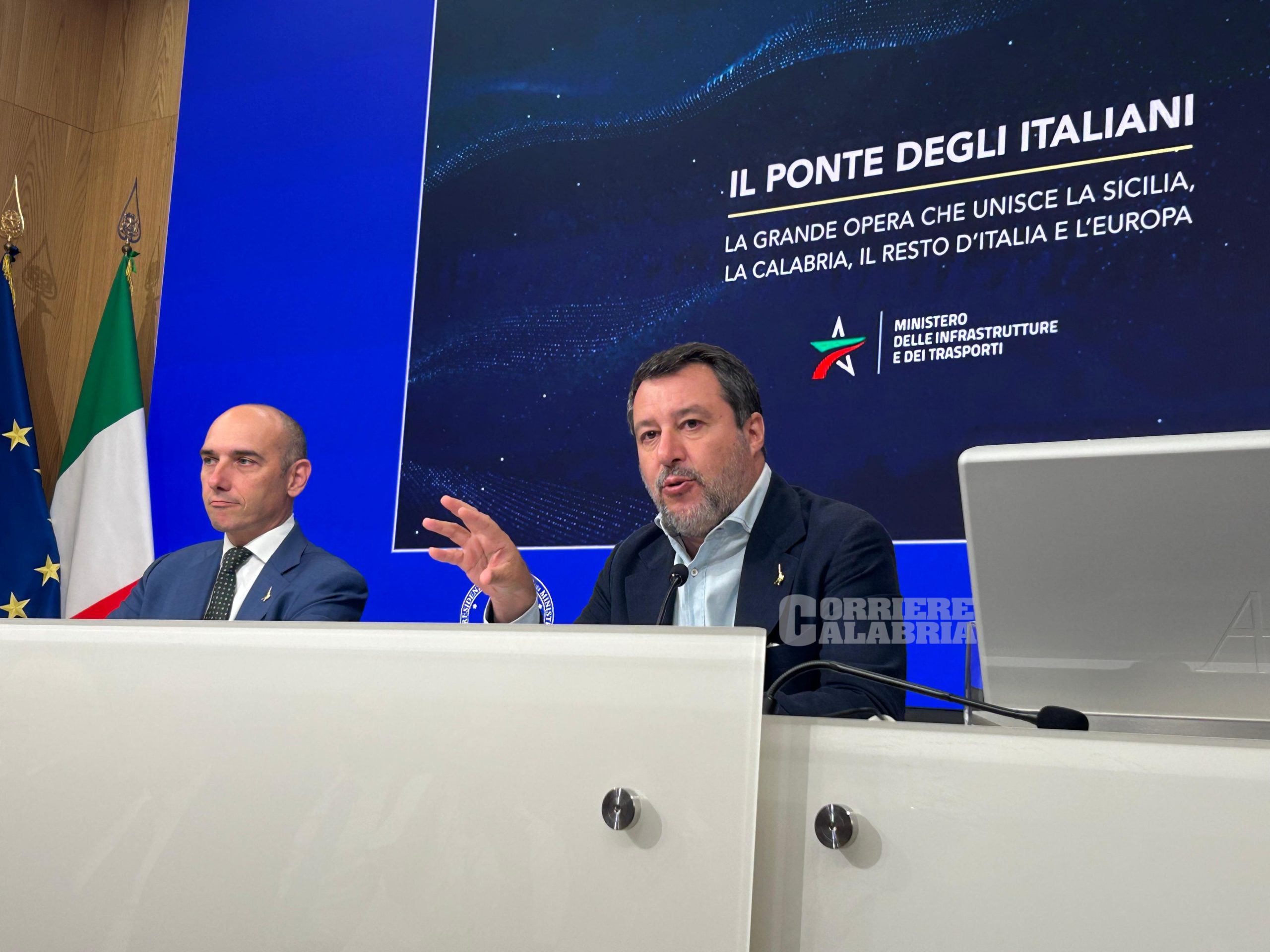 Accanto a lui, in conferenza stampa, il sottosegretario alla presidenza del consiglio con delega al Cipess Alessandro Morelli. Presente anche l’amministratore delegato della Società Stretto di Messina Pietro Ciucci. E a Palazzo Chigi questa mattina è arrivato anche il presidente della Regione Calabria Roberto Occhiuto.