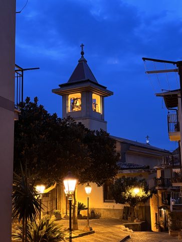 Accanto a Discover Scilla, l’associazione conduce da tempo una serie di iniziative completamente autofinanziate. Lo fanno insieme alle volontarie e ai volontari che li sostengono, in accordo con l’amministrazione del Comune di Scilla. Hanno adottato alcune aree verdi del centro storico come la “Scalinata del Serro” e la “Scalinata Giuseppe Garibaldi” per interventi di riqualificazione e rinaturalizzazione. Hanno scelto di piantare specie arbustive e arboree tipiche della macchia mediterranea di quelle coste, scegliendo solo piante e alberi resistenti alla siccità per evitare il consumo di risorse idriche. E la verità è che sono nati dei veri e propri percorsi botanici. Un’altra azione ha riguardato l’illuminazione delle celle campanarie delle chiese di Scilla e delle sue frazioni, come la Chiesa di San Rocco e la Chiesa dello Spirito Santo di Scilla, e della chiesa di San Gaetano della frazione di Melia. «In alcune frazioni – racconta Vittorio Porpiglia – ci sono anziani che aspettano, ogni sera, che si accenda il faro sul campanile. Quando ce l’hanno detto, abbiamo capito che avevamo fatto bene a farlo». Si tratta di metterli in risalto per il ruolo simbolico che hanno sempre rivestito per le comunità e valorizzare il contesto in cui sono inseriti accrescendone la bellezza nelle ore serali.