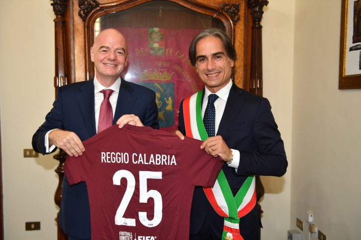 Il primo cittadino ha voluto evidenziare quanto essere accanto al presidente della FIFA sia “un grande orgoglio, da appassionato di sport, da reggino, da cittadino e naturalmente da sindaco di questa città».